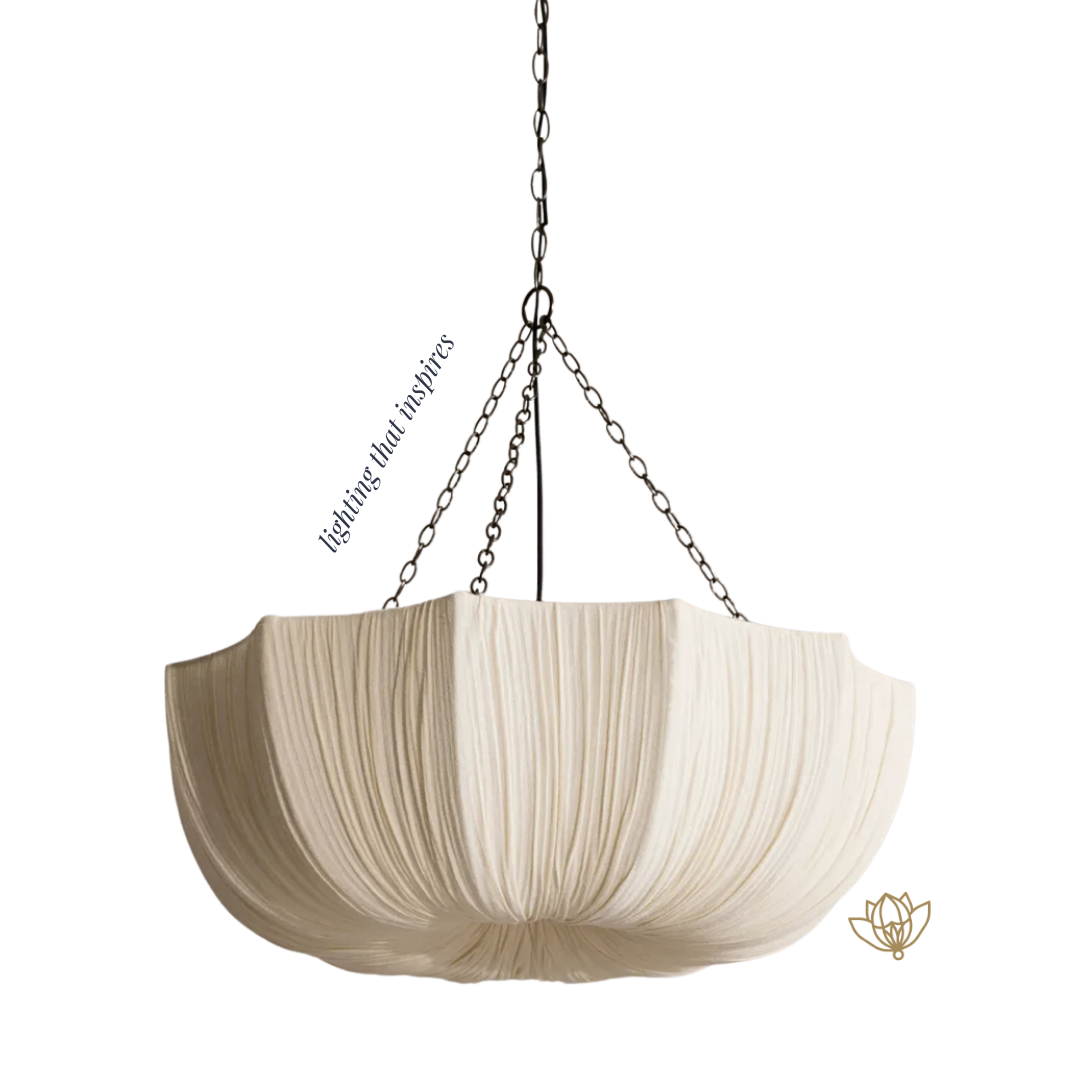 Its oversized, draped fabric shade is soft and cloud-like, diffusing light into the most inviting glow. But don’t mistake its softness for fragility… its scale and bold form bring real presence. It commands a room, creating that daring tension between airy texture and sculptural shape.